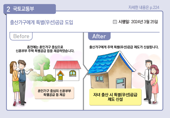 ● 입주자 모집공고일 기준 2세 이하 자녀(태아 포함)가 있으면 주택 우선 공급(총 7만 가구 수준)